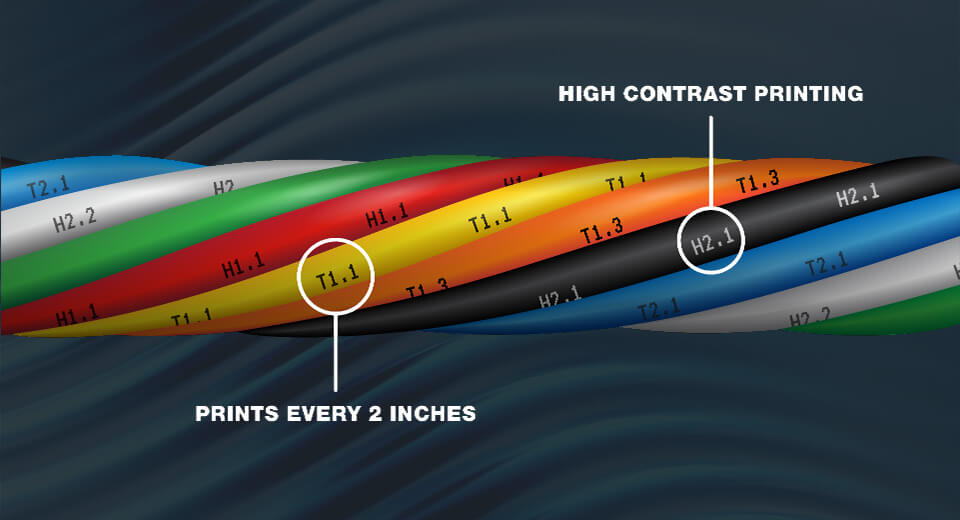 Pre-marked cable identifies critical information for each conductor and can be customized to your job’s requirements.